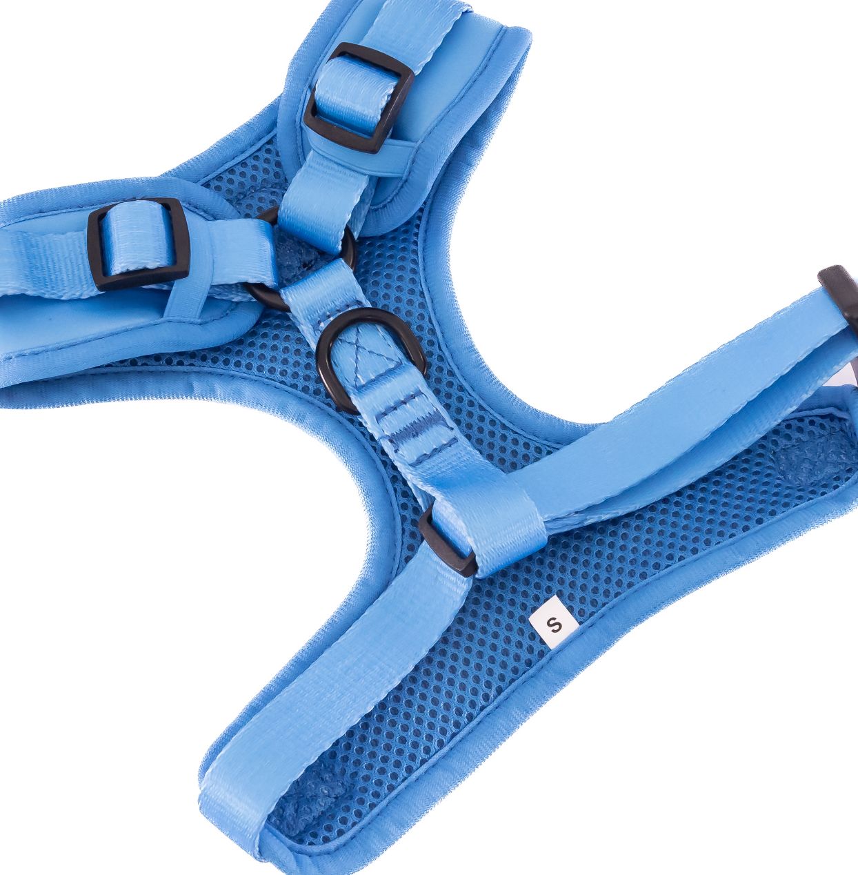The harness features adjustable neck and chest straps, providing a secure and customised fit for dogs of different shapes and sizes.